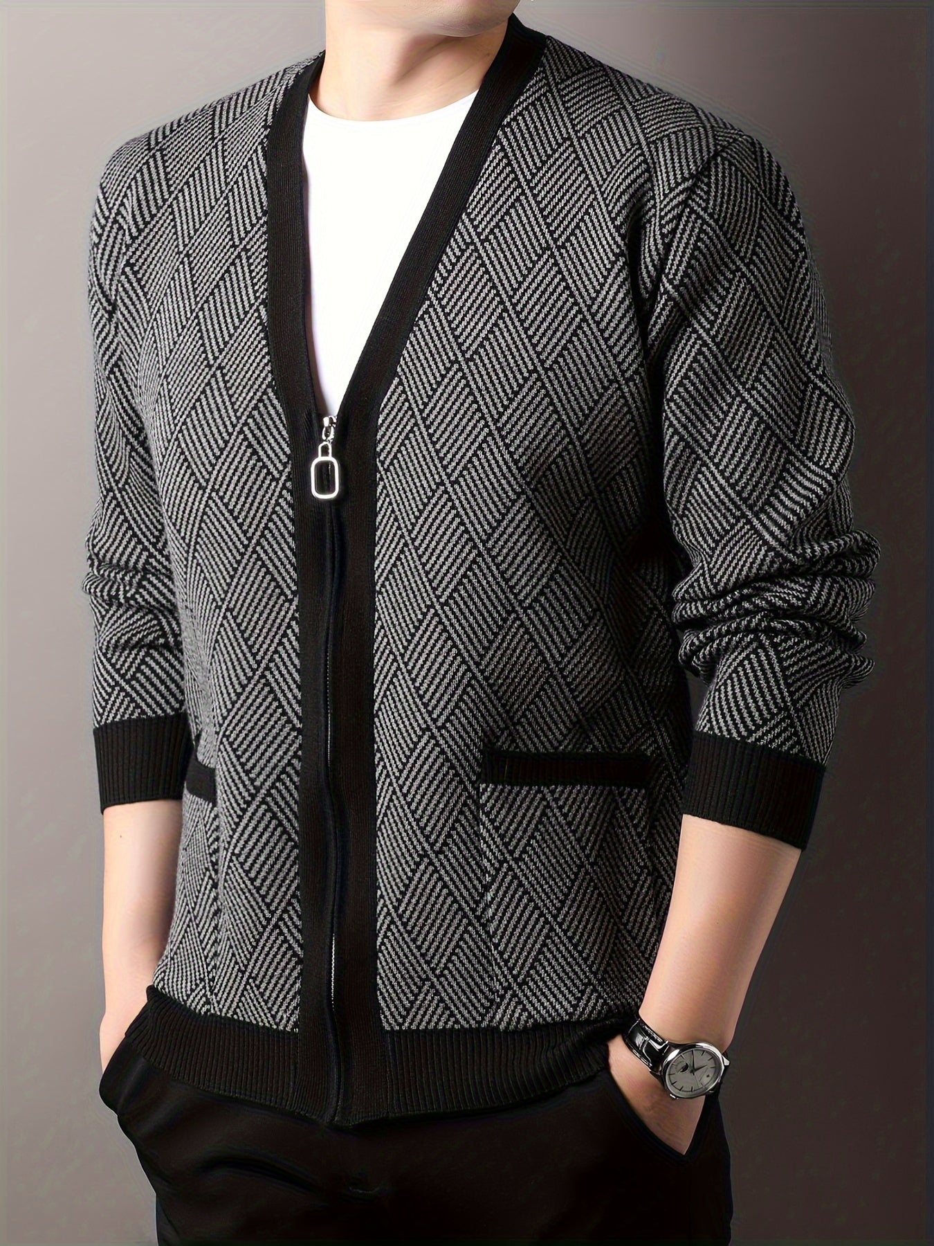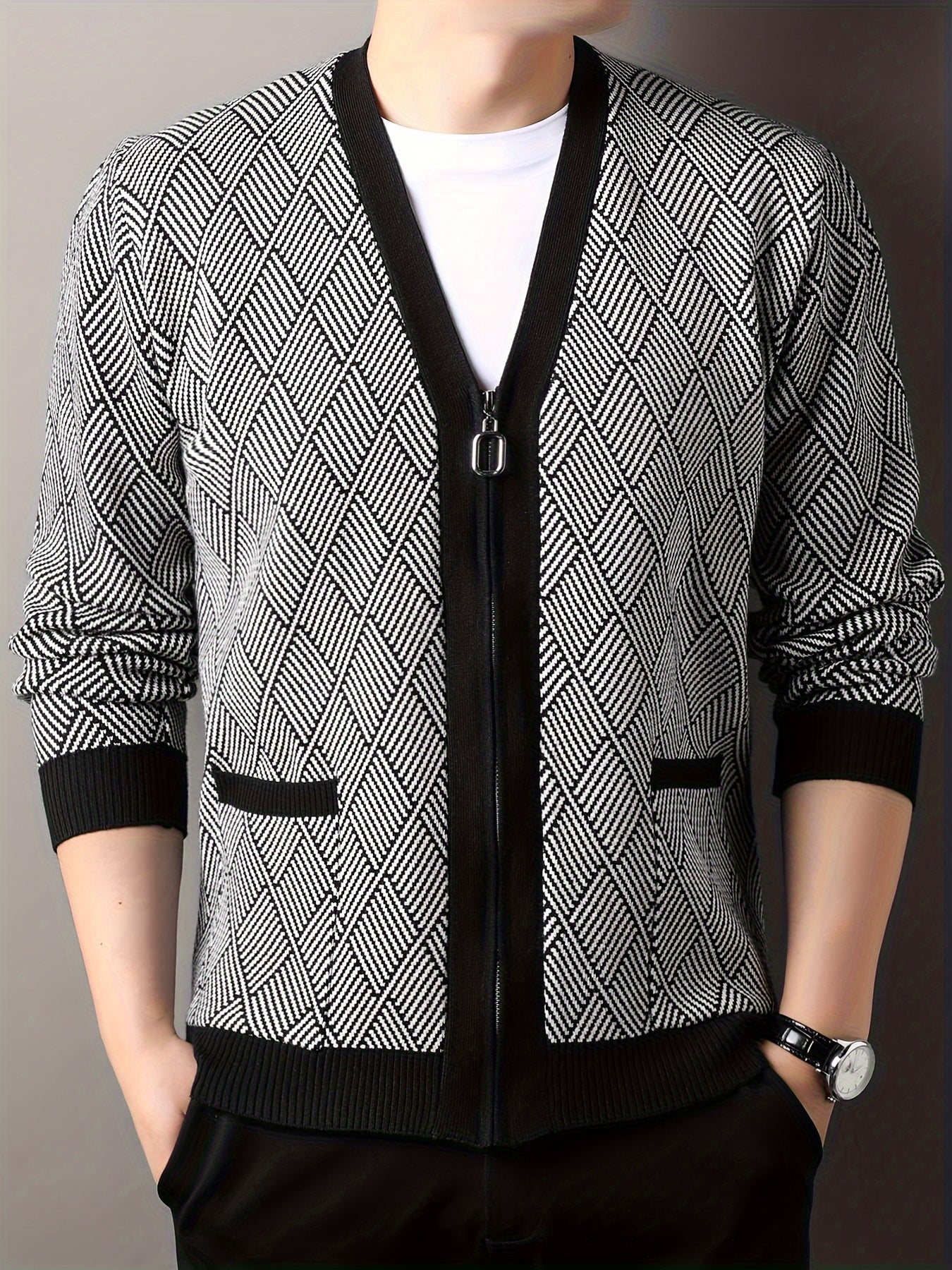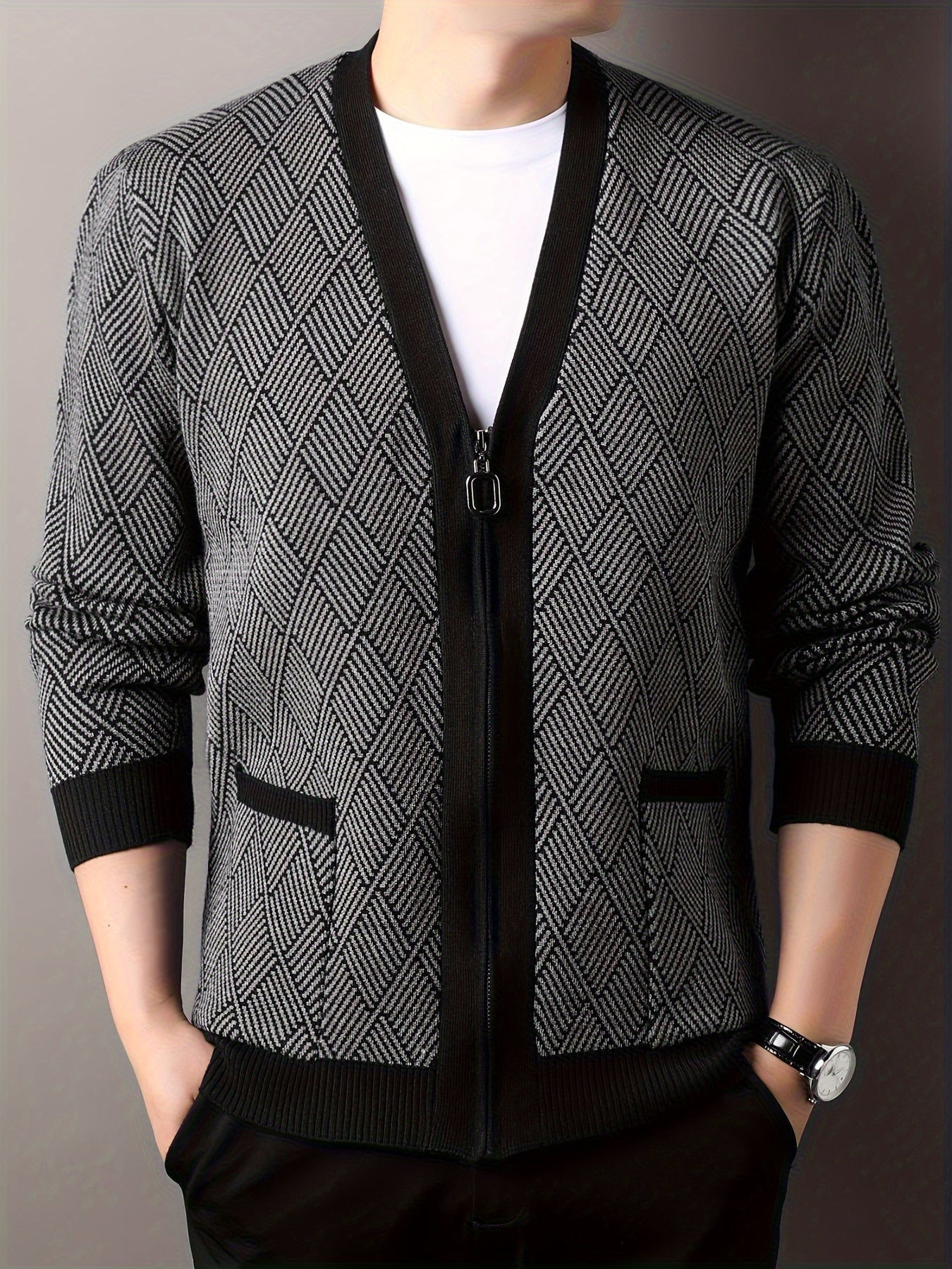 ROCKO | Cardigan décontracté pour homme avec fermeture éclair et col en V